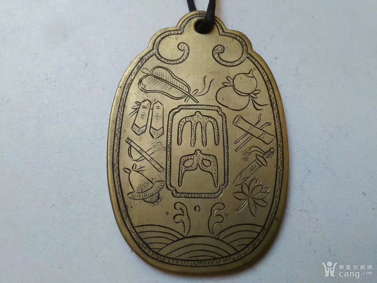 清代满工双面精雕龙纹暗八仙大内御赐字样原光铜腰牌