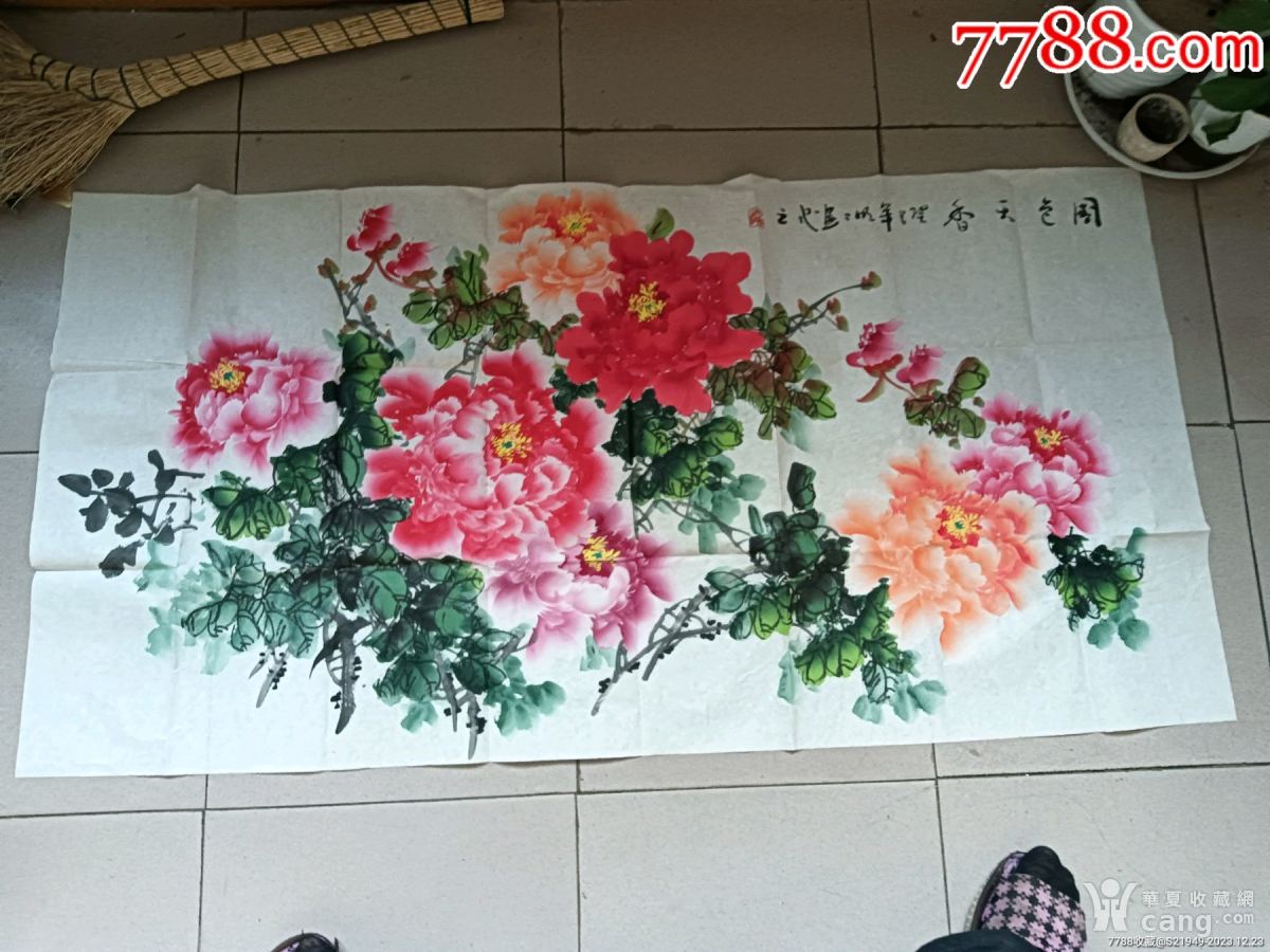 纯手绘画家原创原稿没落款花鸟画.牡丹富贵图91x54cm