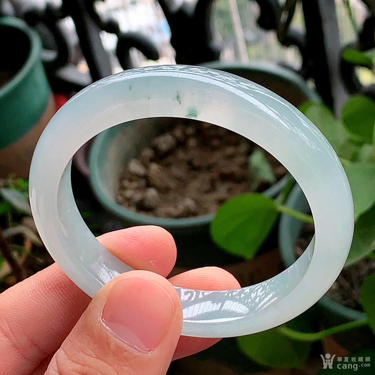 缅甸天然翡翠A货冰透水润起荧光飘绿宽边手镯57圈口