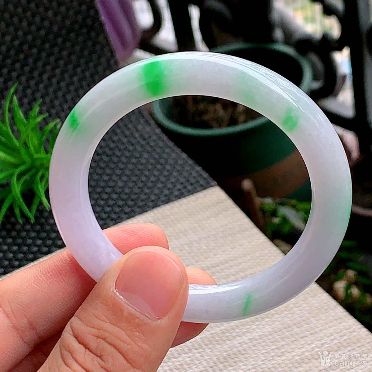缅甸天然翡翠A货冰透水润飘绿圆条手镯55.3圈口