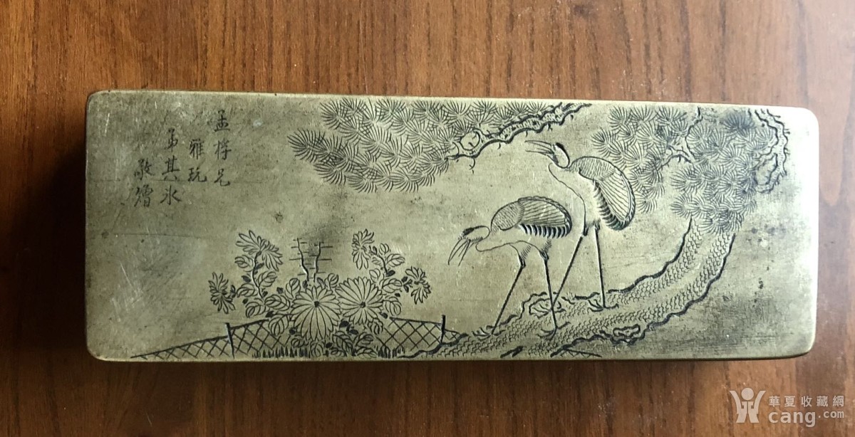 清松鹤菊图硕大铜墨盒