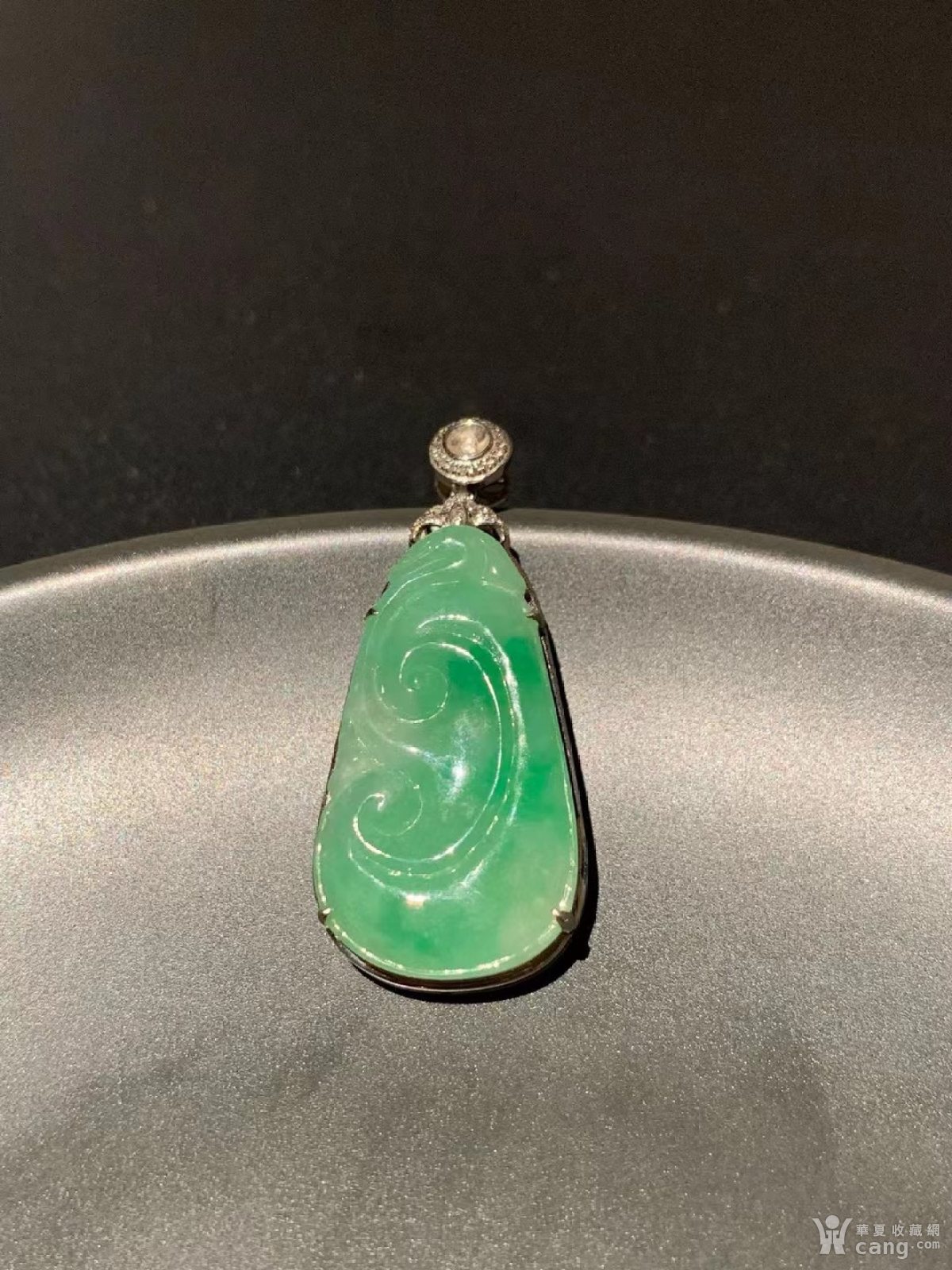 冰糯种甜绿如意,镶嵌18K 真金真钻