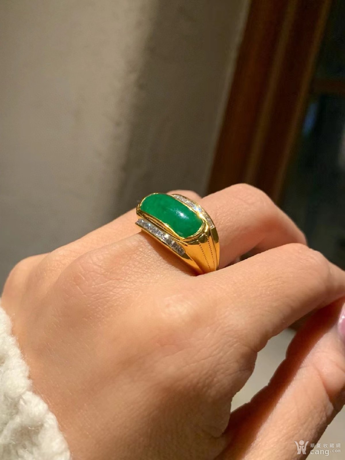 新货 18k真金真钻满绿马鞍戒指