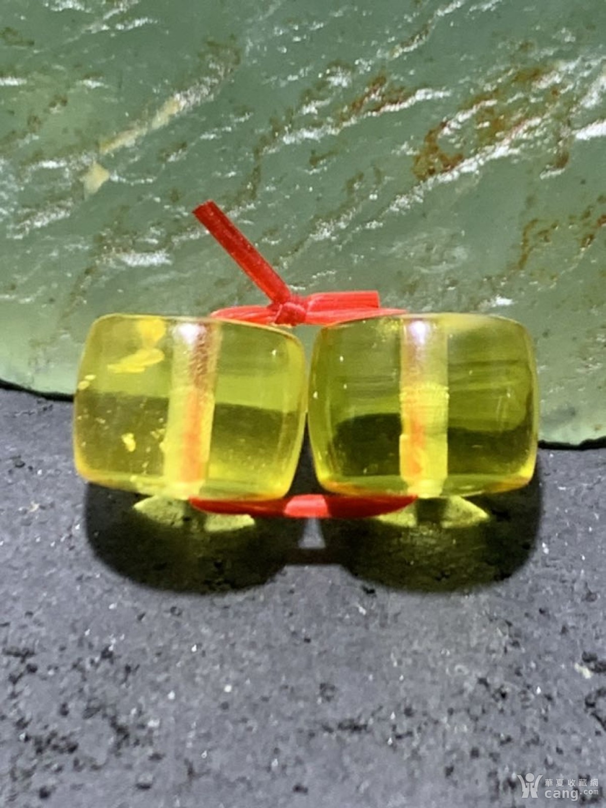 天然乌克兰原矿蜜蜡老形桶珠腰珠两颗,