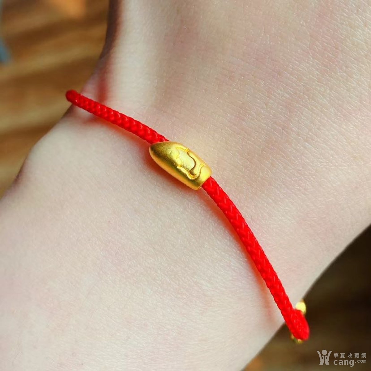 B879正品999千足金3D硬黄金老鼠爱大米数钱新年红手绳!