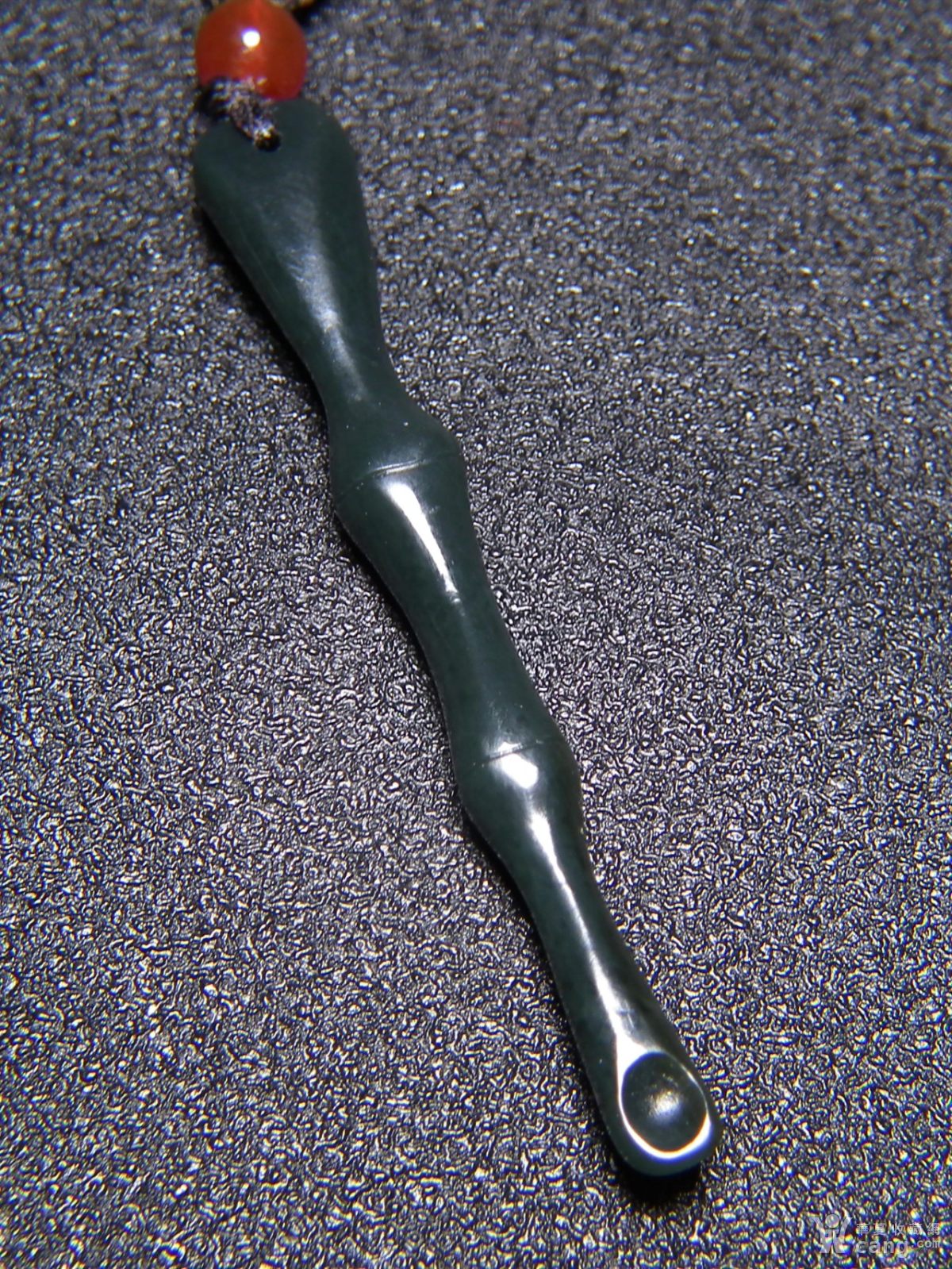 Y16 和田青玉带糖色带孔竹节形细长大玉耳扒坠