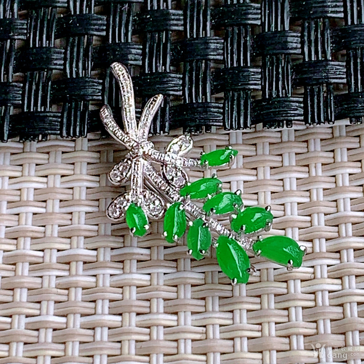 缅甸天然翡翠A货18k金伴钻冰透满绿花开富贵胸针