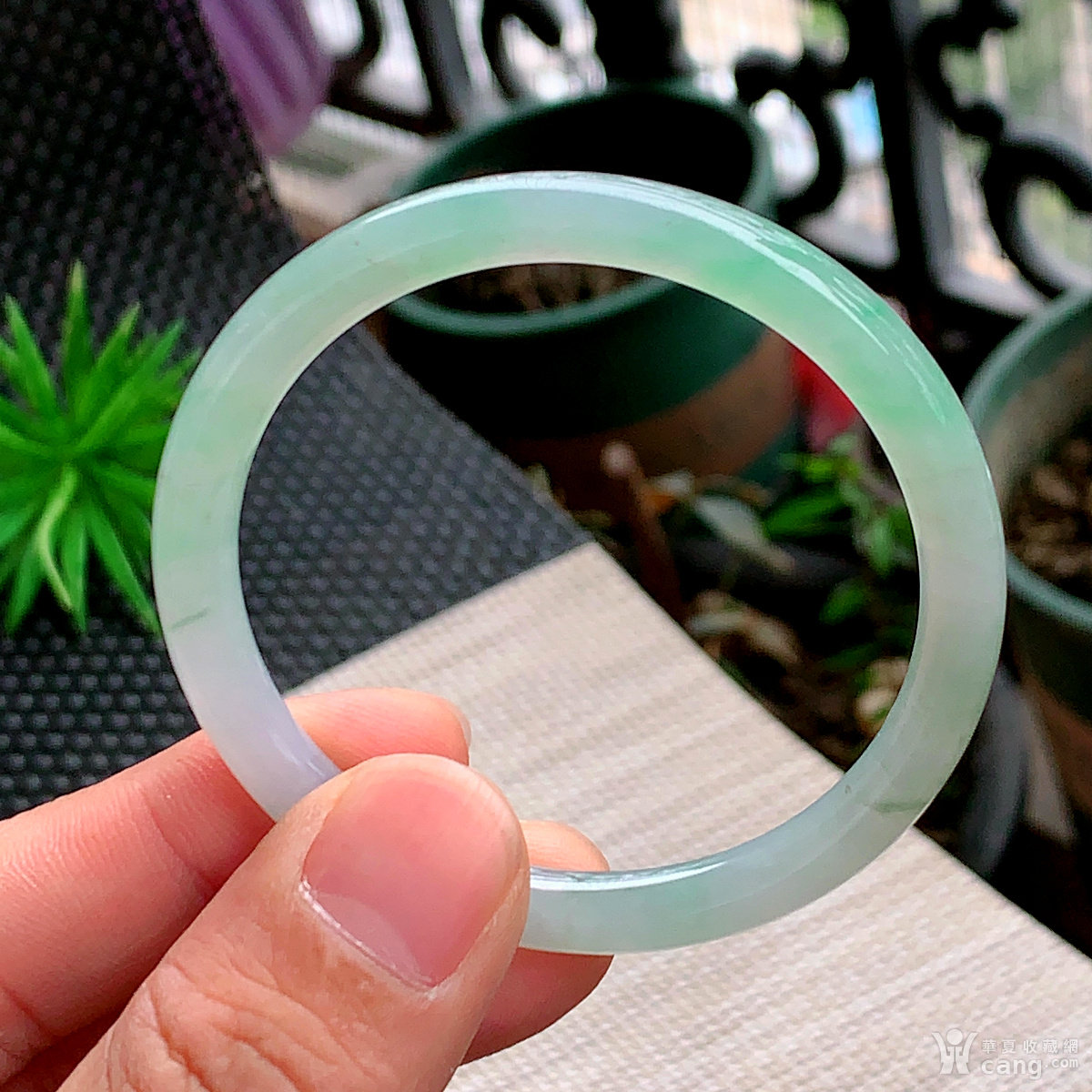 缅甸天然翡翠A货冰透水润飘绿圆条手镯54圈口