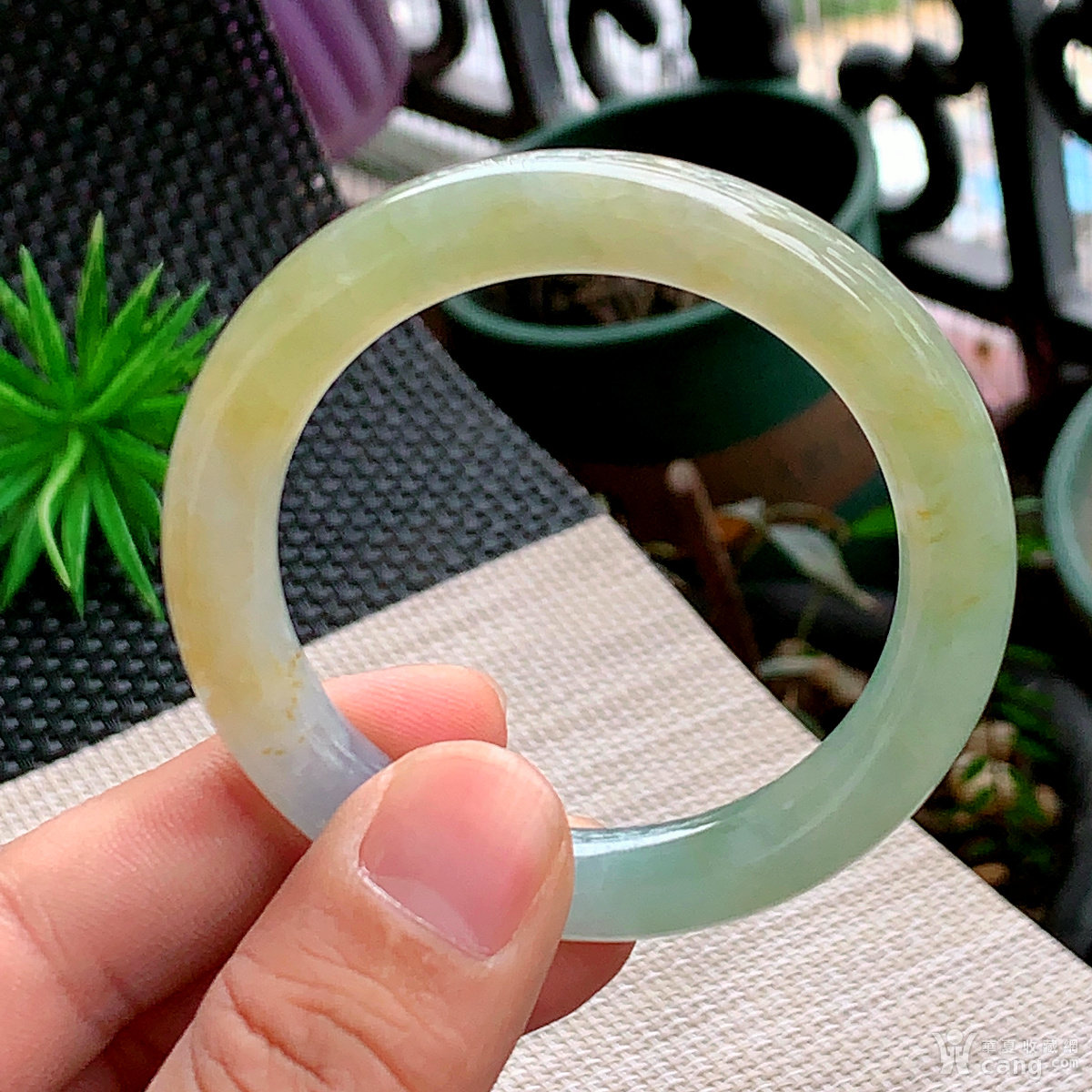 缅甸天然翡翠A货冰透水润飘黄翡圆条手镯52.8圈口
