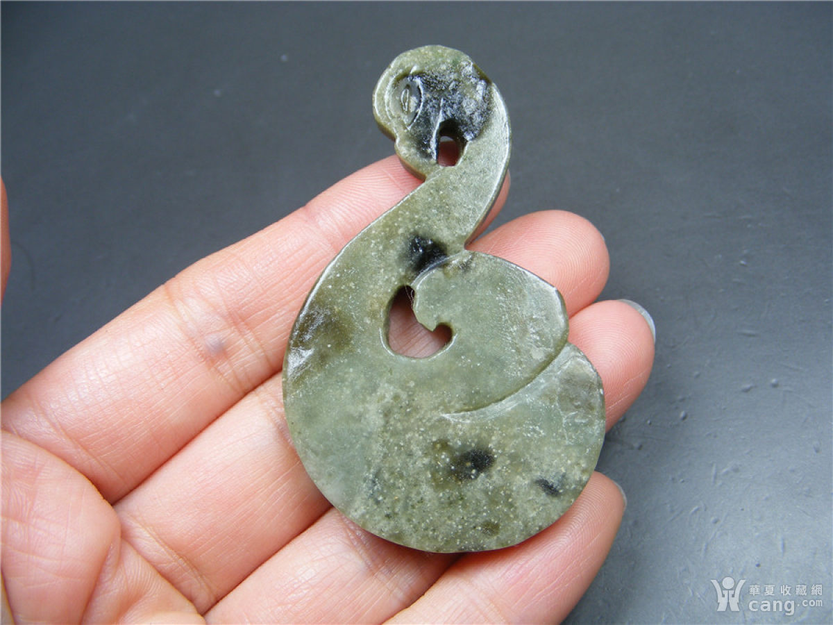 85 和田青玉带沁双面工镂空回头凤鸟