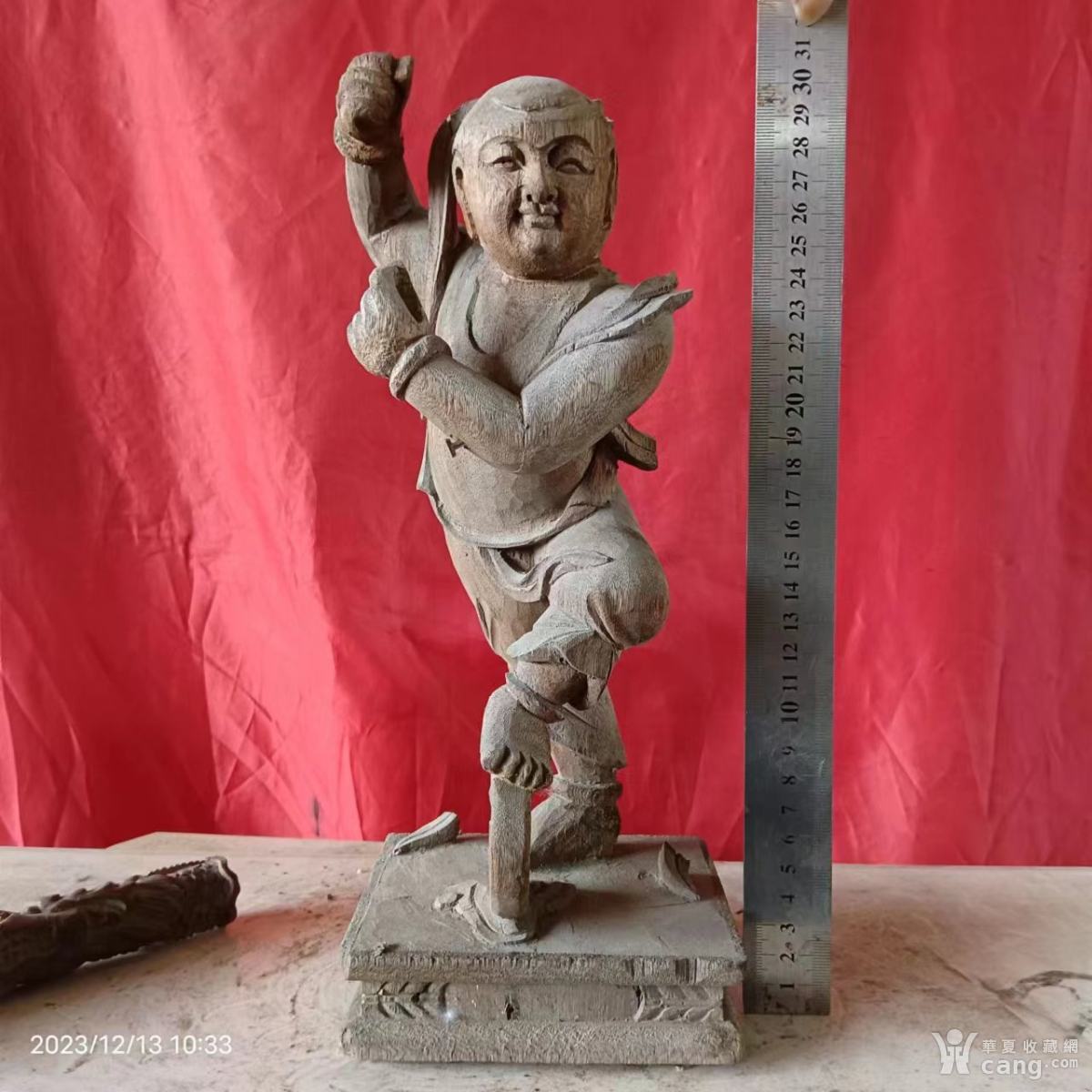 一手用钢钉固定,高31长12宽11厘米,樟木雕武将哪吒太子