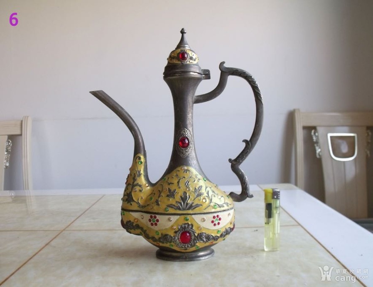 全品黄铜加彩镶嵌珠宝扁型酒壶一件