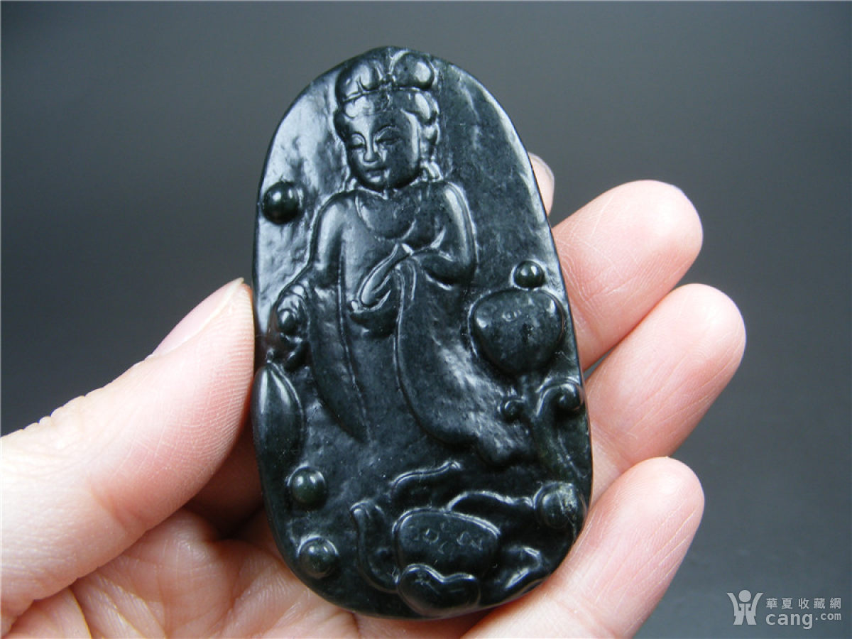 80号 老库存 几十年的和田青玉单面工带牛鼻孔浮雕观音大佩