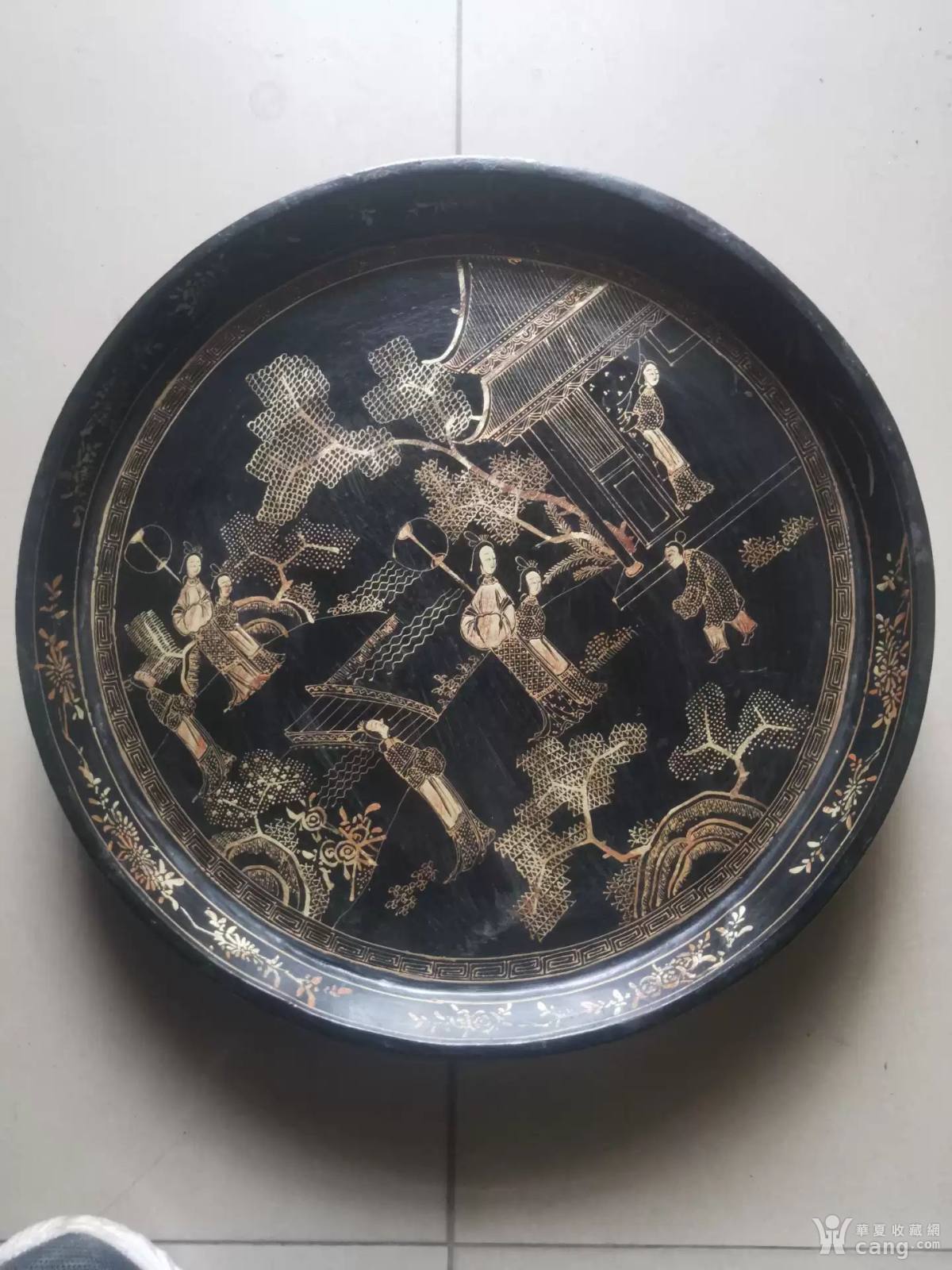 大漆嵌螺钿案几 此案几面板有拦水线,束腰处四面带海棠形