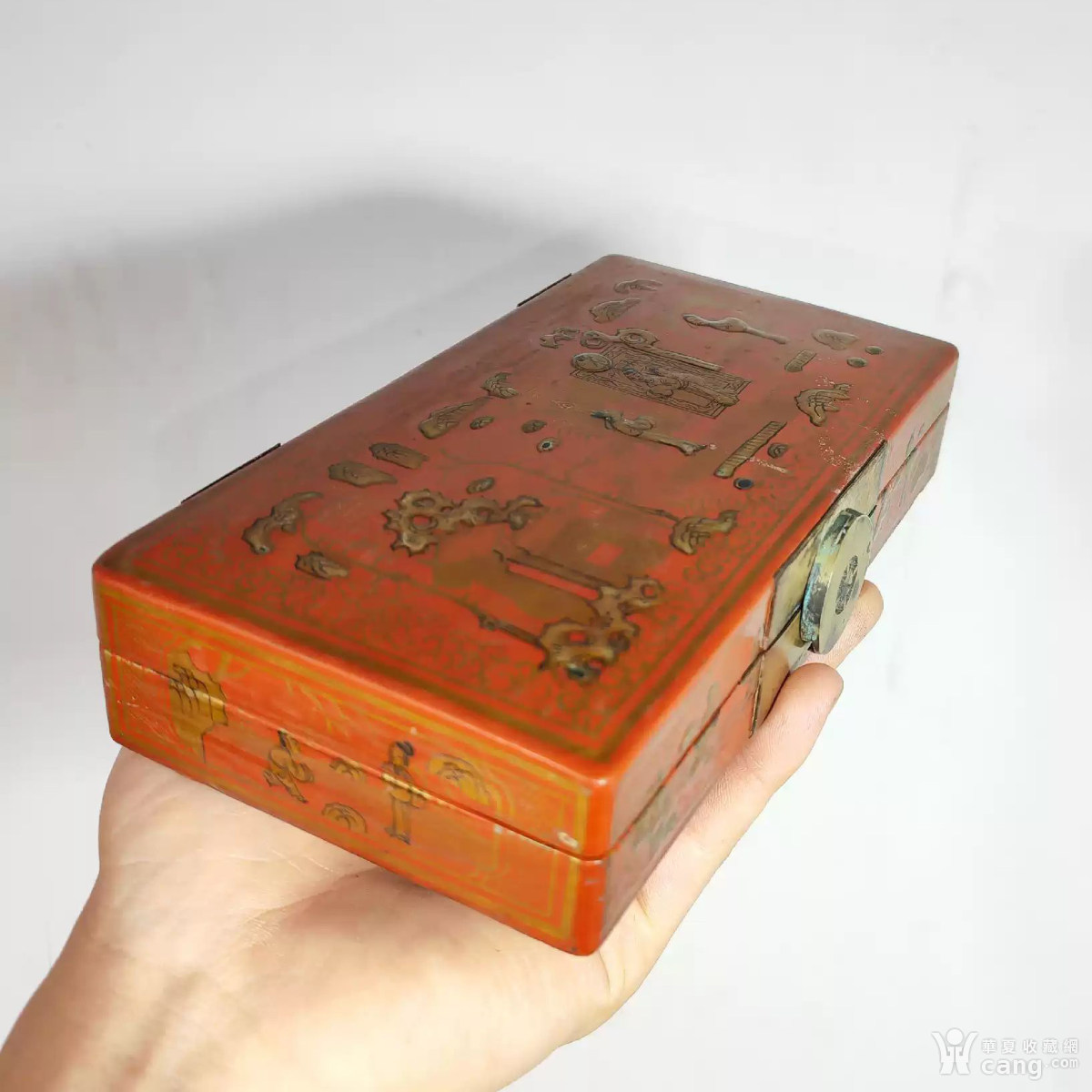 清代朱红漆描金人物故事首饰盒