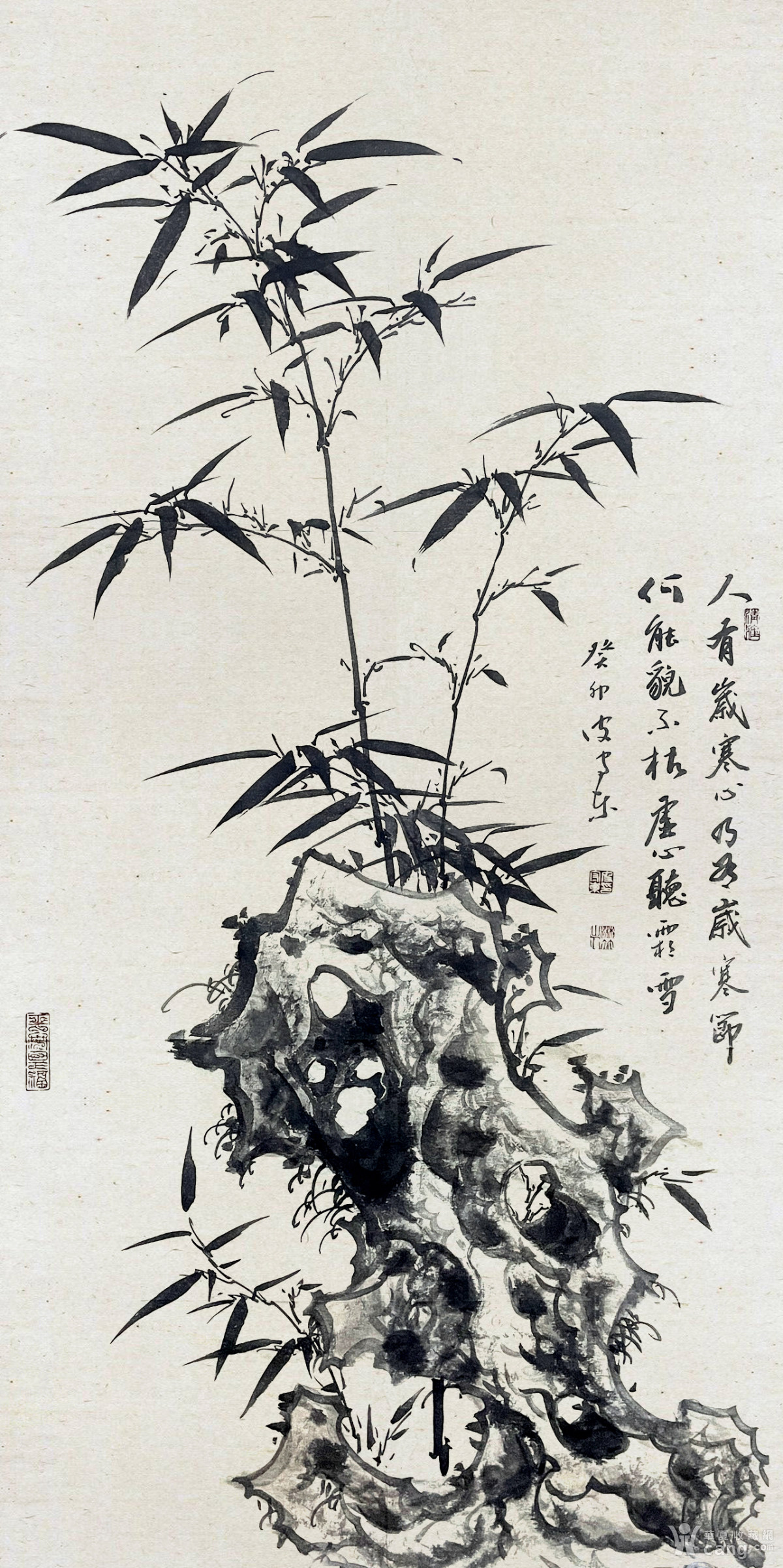 【保真】皮老师天津美协会员纪振民弟子三尺小写意竹石11
