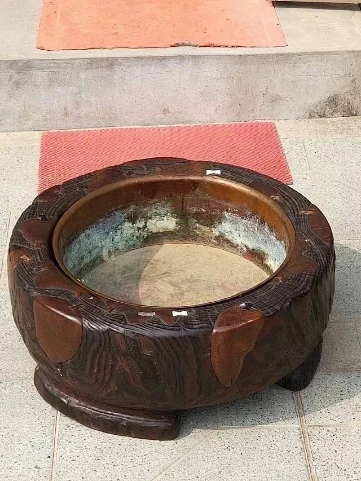 446号清代王爷,达官贵人使用的铜质金盆,镶嵌黄花梨,小叶紫