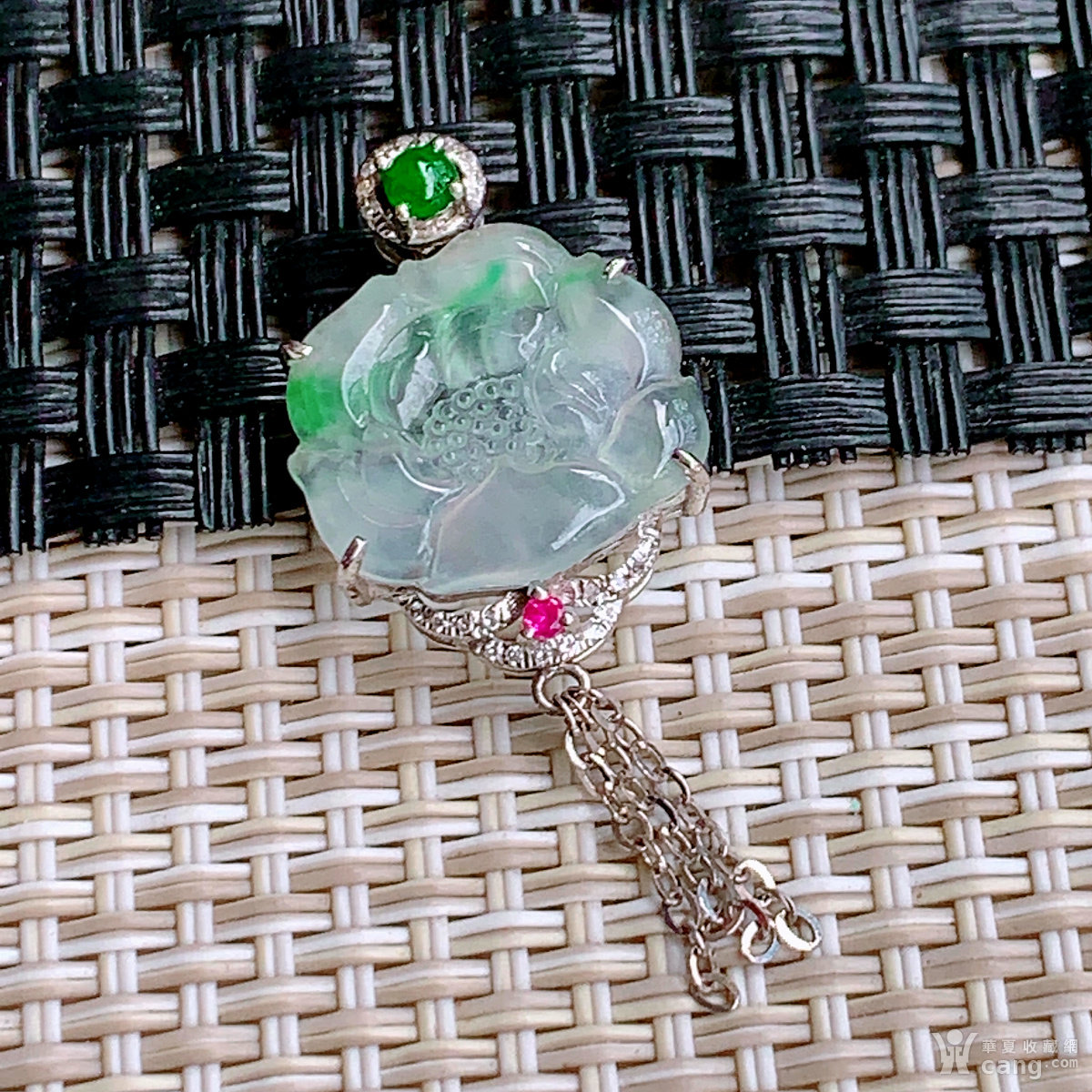 缅甸天然翡翠A货18k金伴钻冰种飘绿花开富贵吊坠