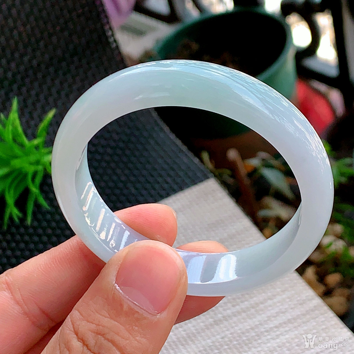 缅甸天然翡翠A货冰透水润浅绿宽边手镯55圈口
