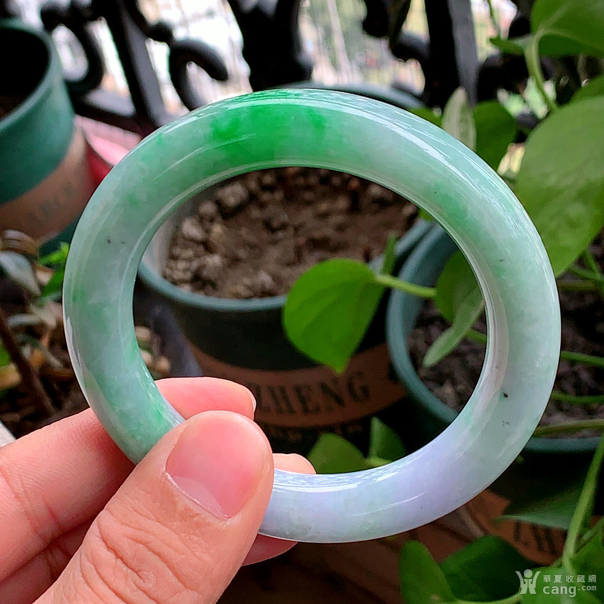 缅甸天然翡翠A货冰润春带彩大圈口圆条手镯60圈口