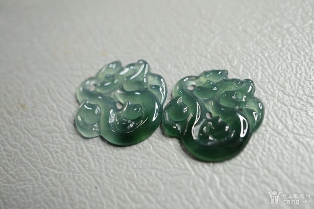 天然的翡翠龙纹镂空配饰一对 蓝色的种水很好的很漂亮E155