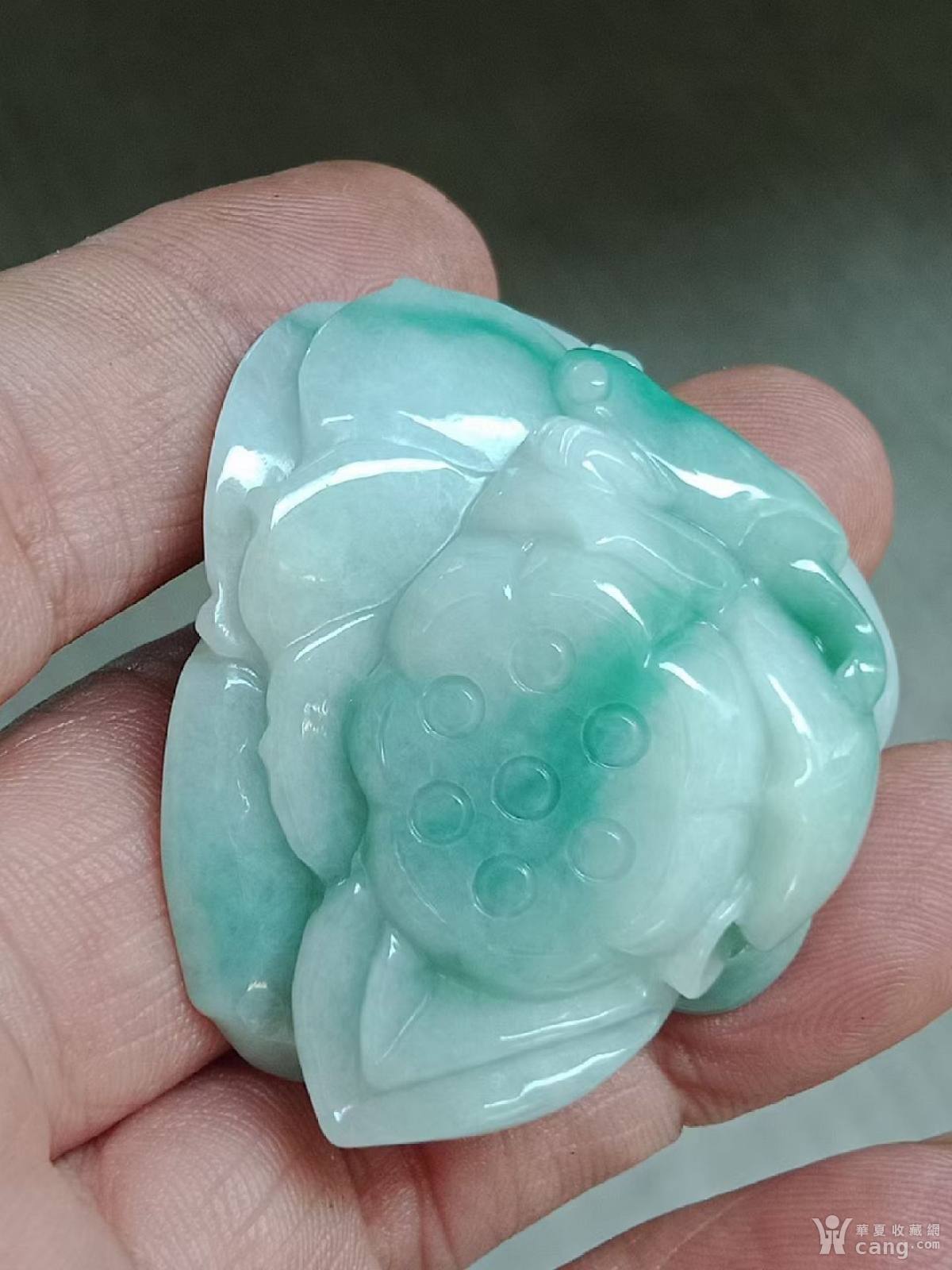 864407-2A翡翠阳绿莲花手把件(送证书)
