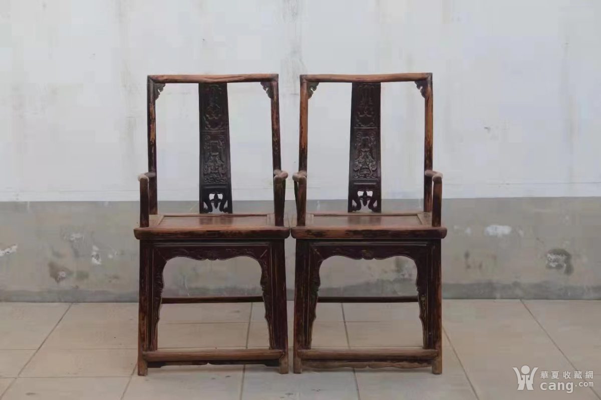 清代榉木南官帽椅一对