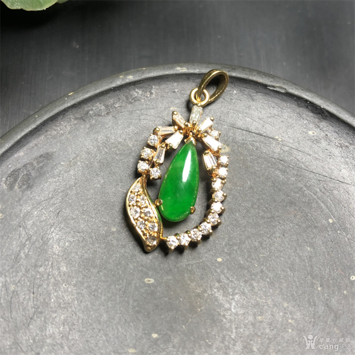 F647香港回流18K金镶钻满绿翡翠吊坠