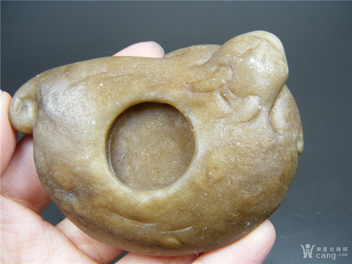 Q4.4 几十年的地方玉带沁深挖圆雕凤鸟大文房水盂摆件