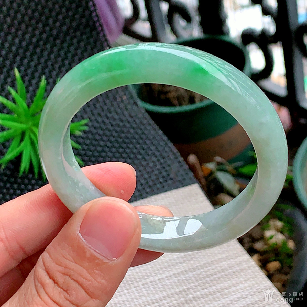 缅甸天然翡翠A货冰透水润飘绿宽边手镯55.8圈口