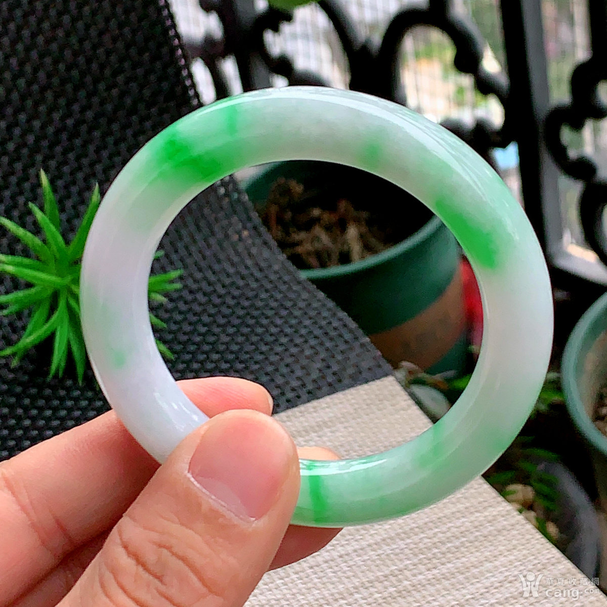 缅甸天然翡翠A货冰润飘阳绿圆条手镯55.3圈口