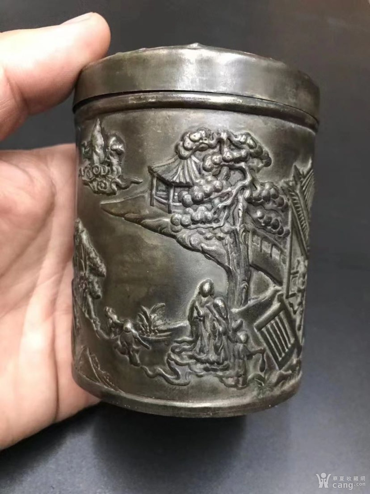 清代大堂号鸿兴款精工山水人物故事银盒!做工一流!皮壳包浆浑厚