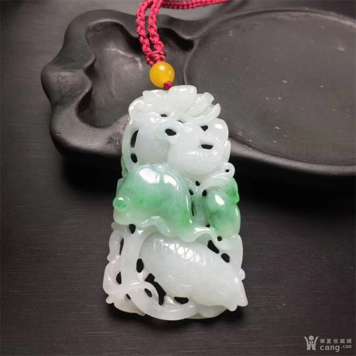 a799老库存白底青飘阳绿翡翠荷叶鸳鸯 连年有余挂佩