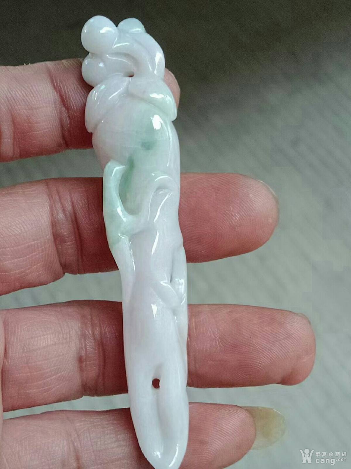 缅甸翡翠AR99979-2A三彩千年老山参手把件(送证书)