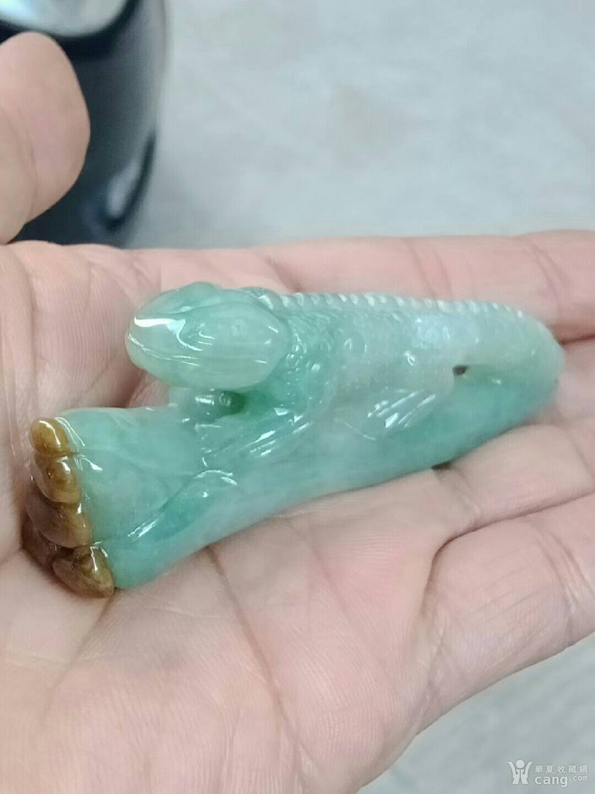缅甸翡翠44433-3A阳绿双彩蜥蜴摆件(送证书)