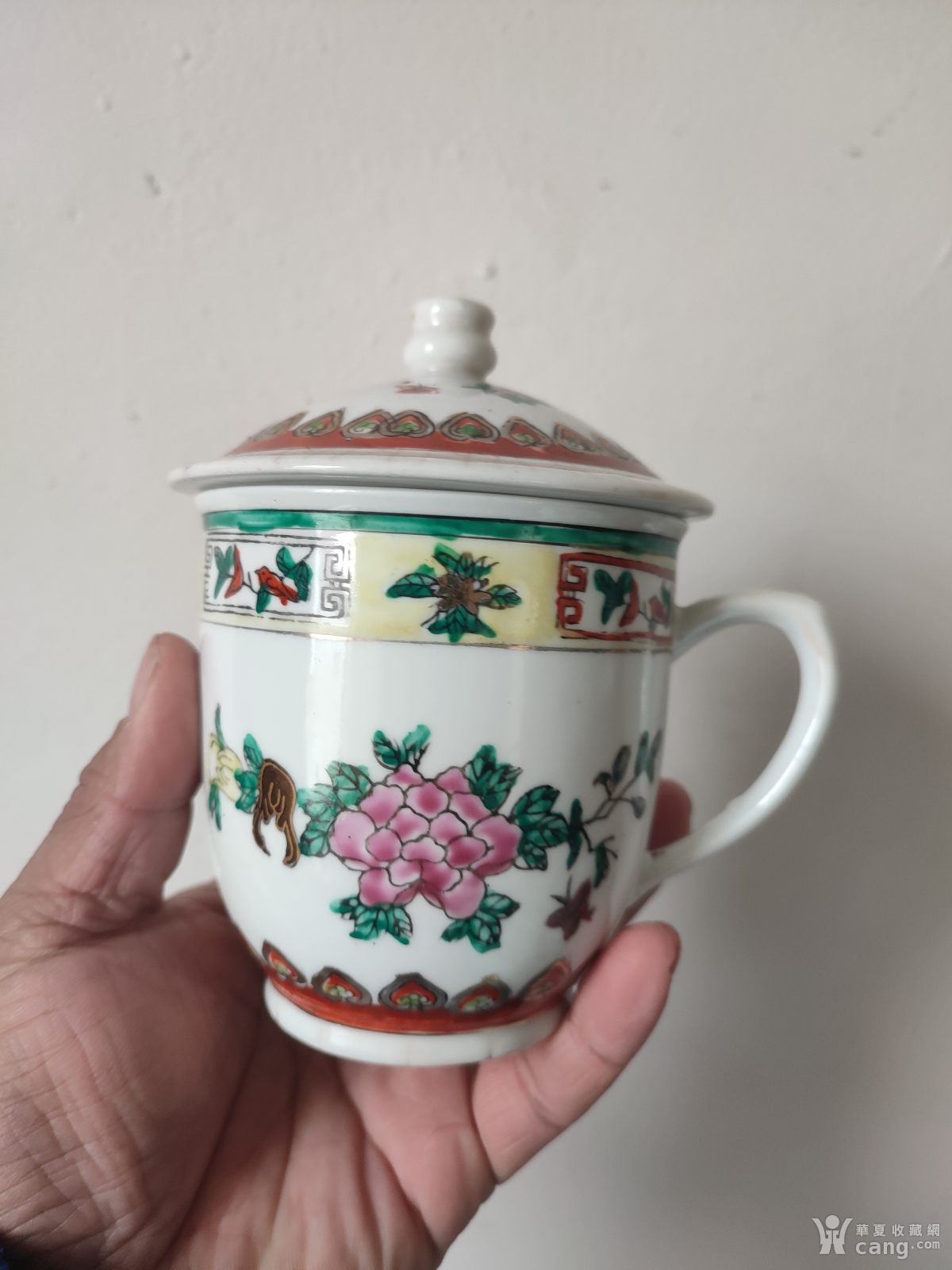全品粉彩瓷器杯子,盖子是后配的,如图所示