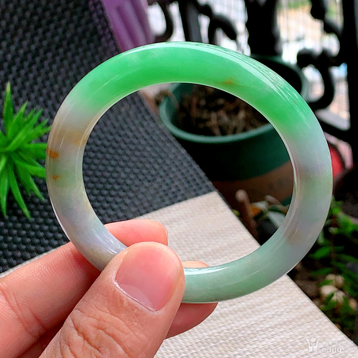缅甸天然翡翠A货冰透水润飘花福禄寿三彩圆条手镯55圈口