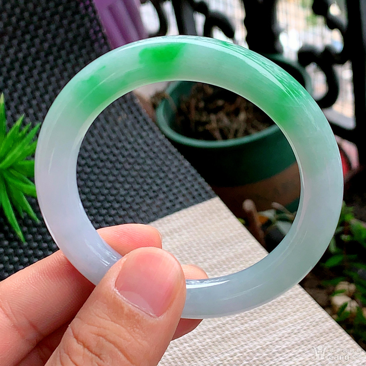 缅甸天然翡翠A货冰透水润飘绿圆条手镯57.6圈口
