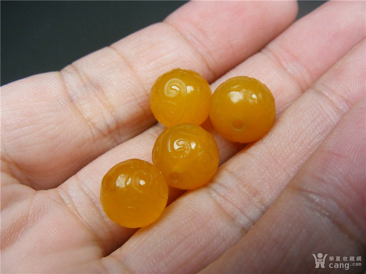 15 老库存 八九十年代黄玛瑙卷云纹大圆珠4颗