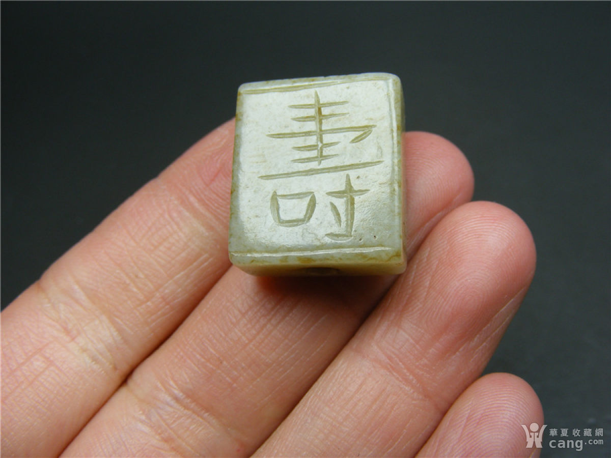 几十年的和田玉带沁通天孔“福夀”中号长方形扁勒子
