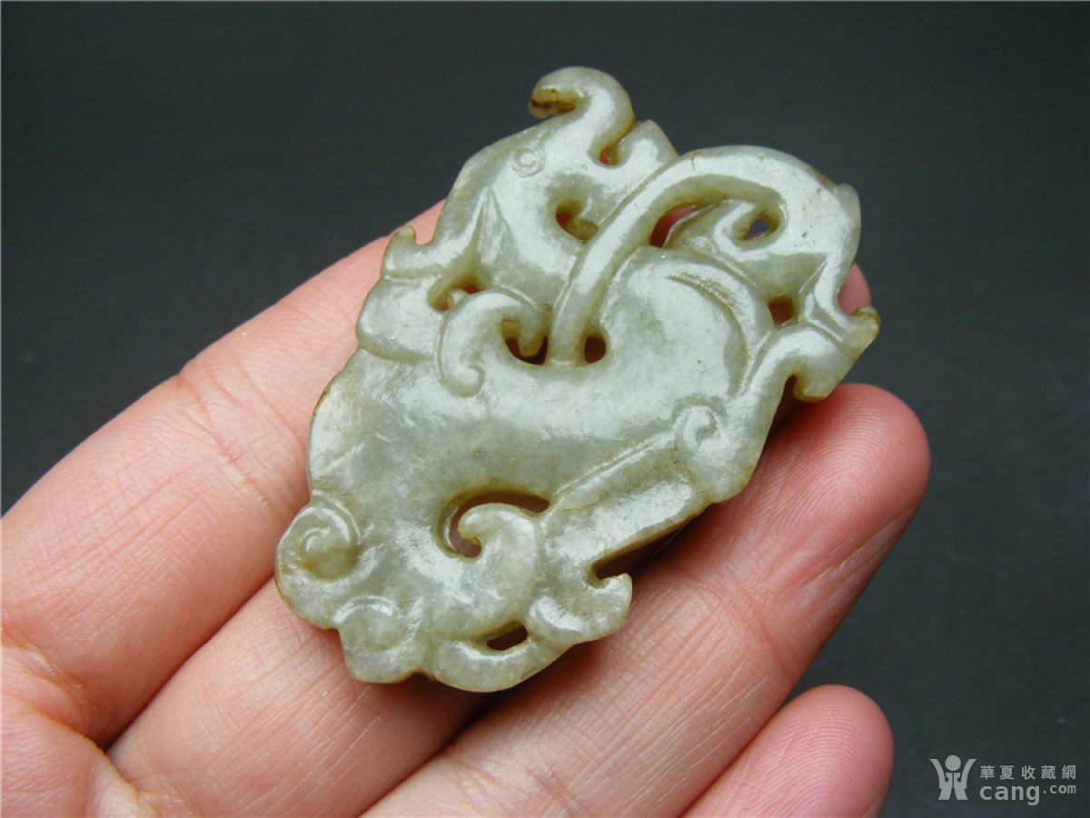 48 几十年的和田玉带沁双面工镂空龙凤呈祥大坠佩