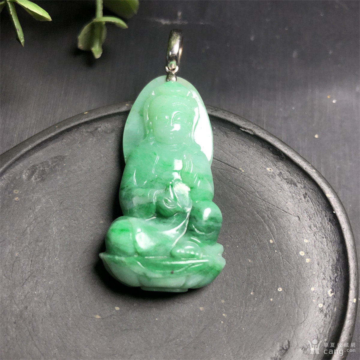 F631香港回流创汇期细糯种白地青飘阳绿翡翠观音吊坠