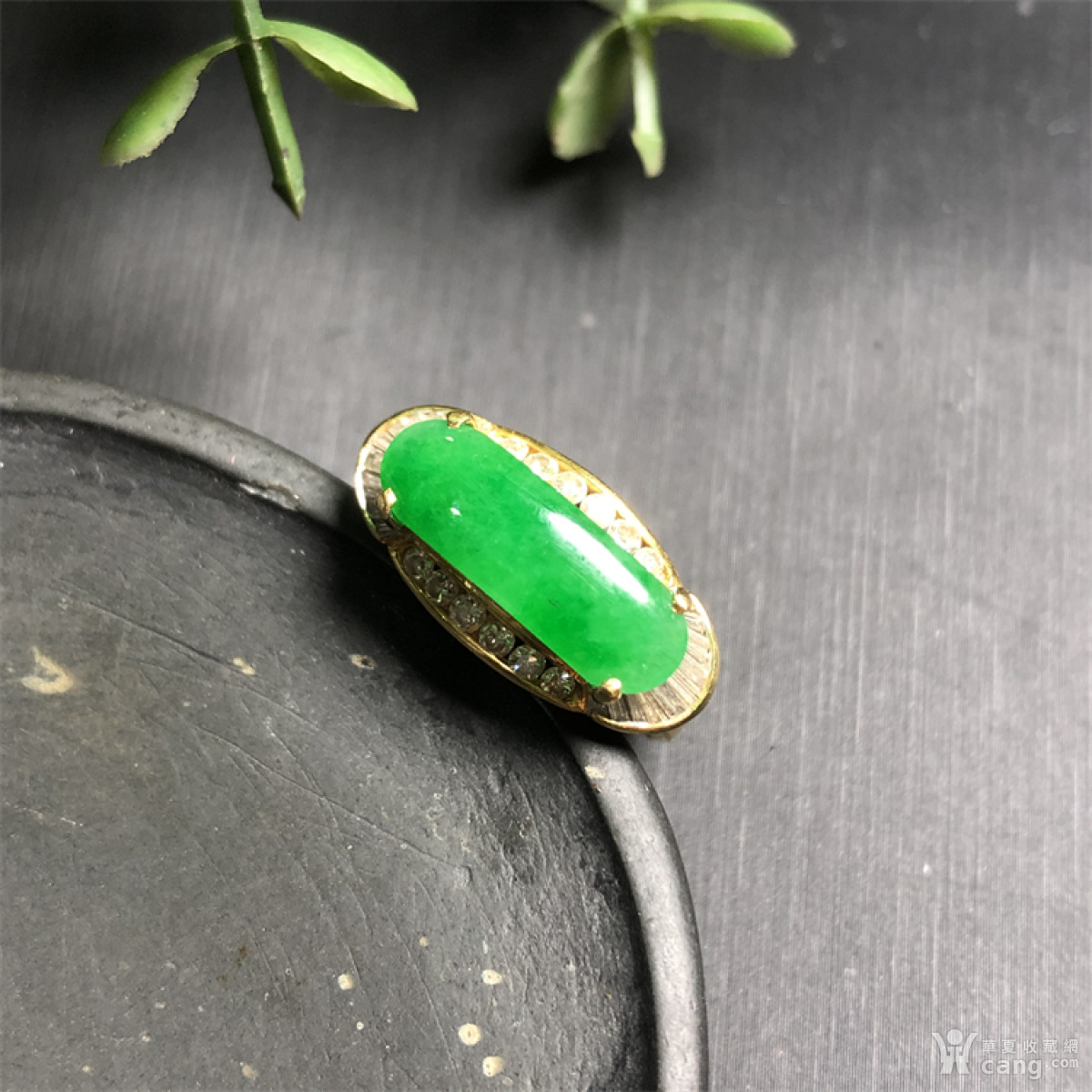 F634香港回流18K金伴钻镶老坑冰种满绿翡翠马鞍戒指