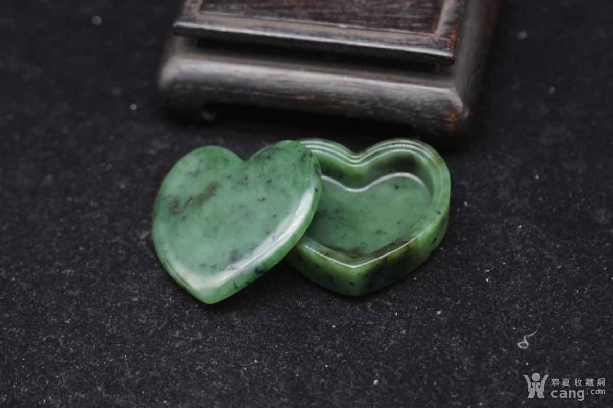 和田玉 碧玉 心型印泥盒 粉盒 墨盒