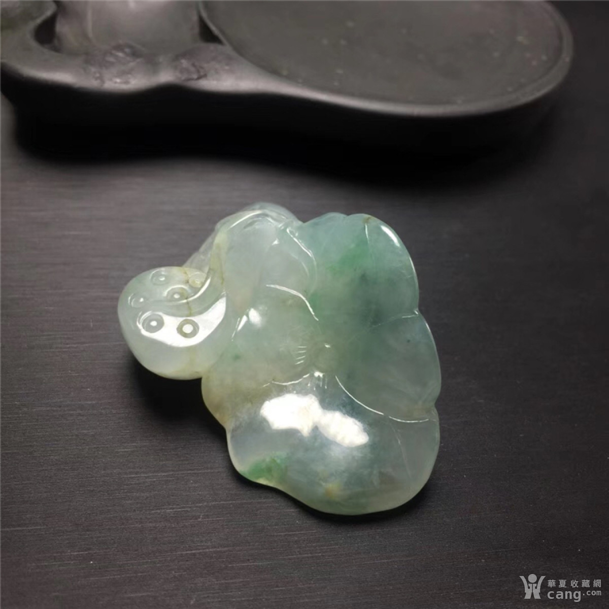 a887解放初老坑冰种飘花并蒂莲蓬荷叶挂件