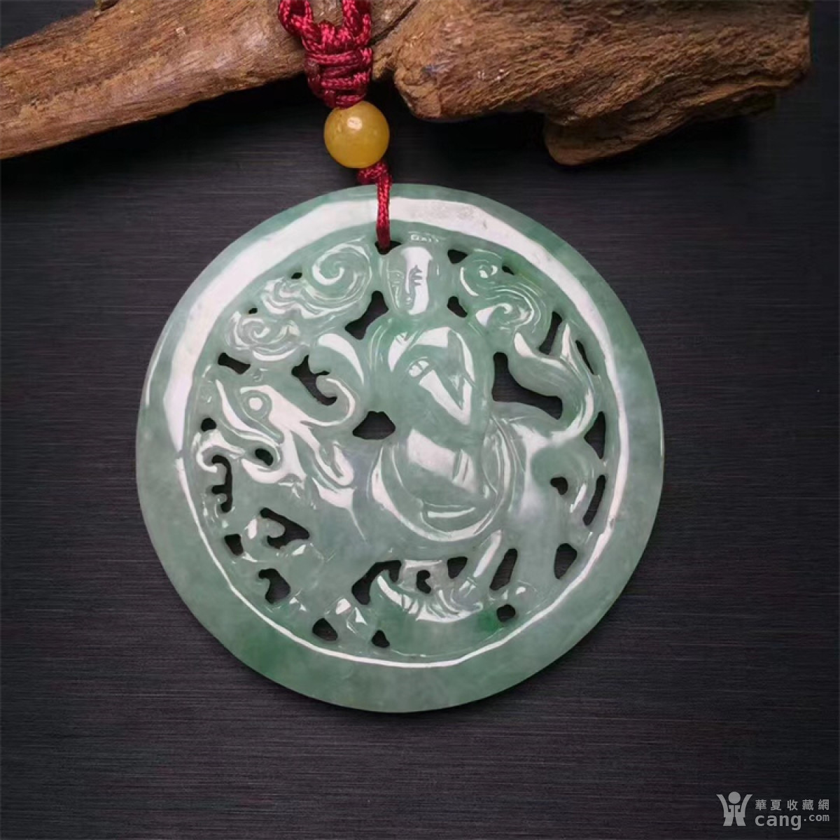 S156创汇期糯冰种满绿翡翠麒麟送子圆佩