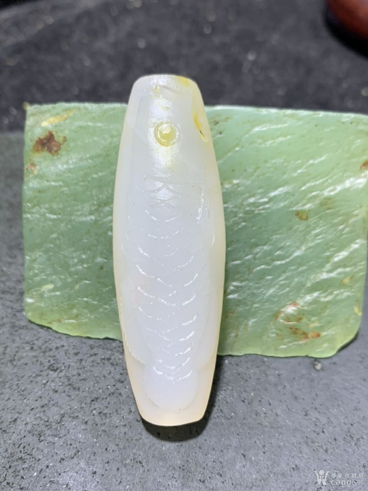 精美亚光高玉化海洋玉髓手工俏色巧雕龙鱼大桶珠一个!