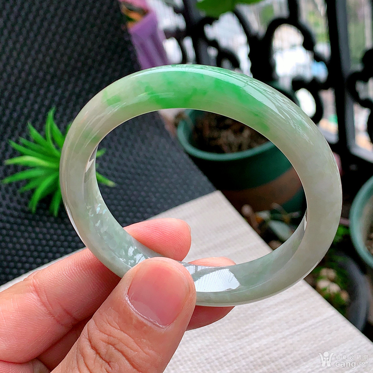 缅甸天然翡翠A货冰润飘绿宽边手镯57.5圈口