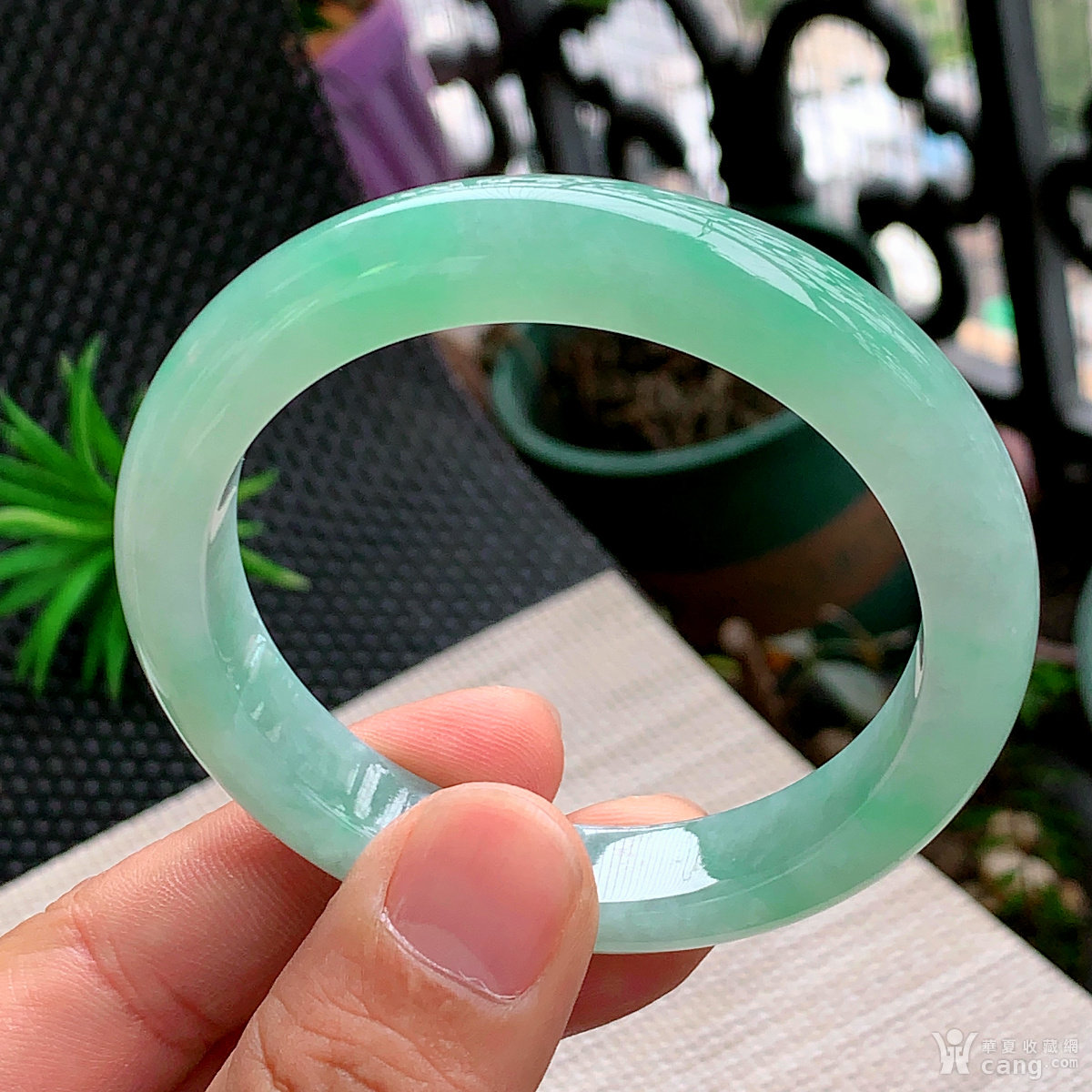 缅甸天然翡翠A货冰透水润飘绿宽边手镯58.8圈口