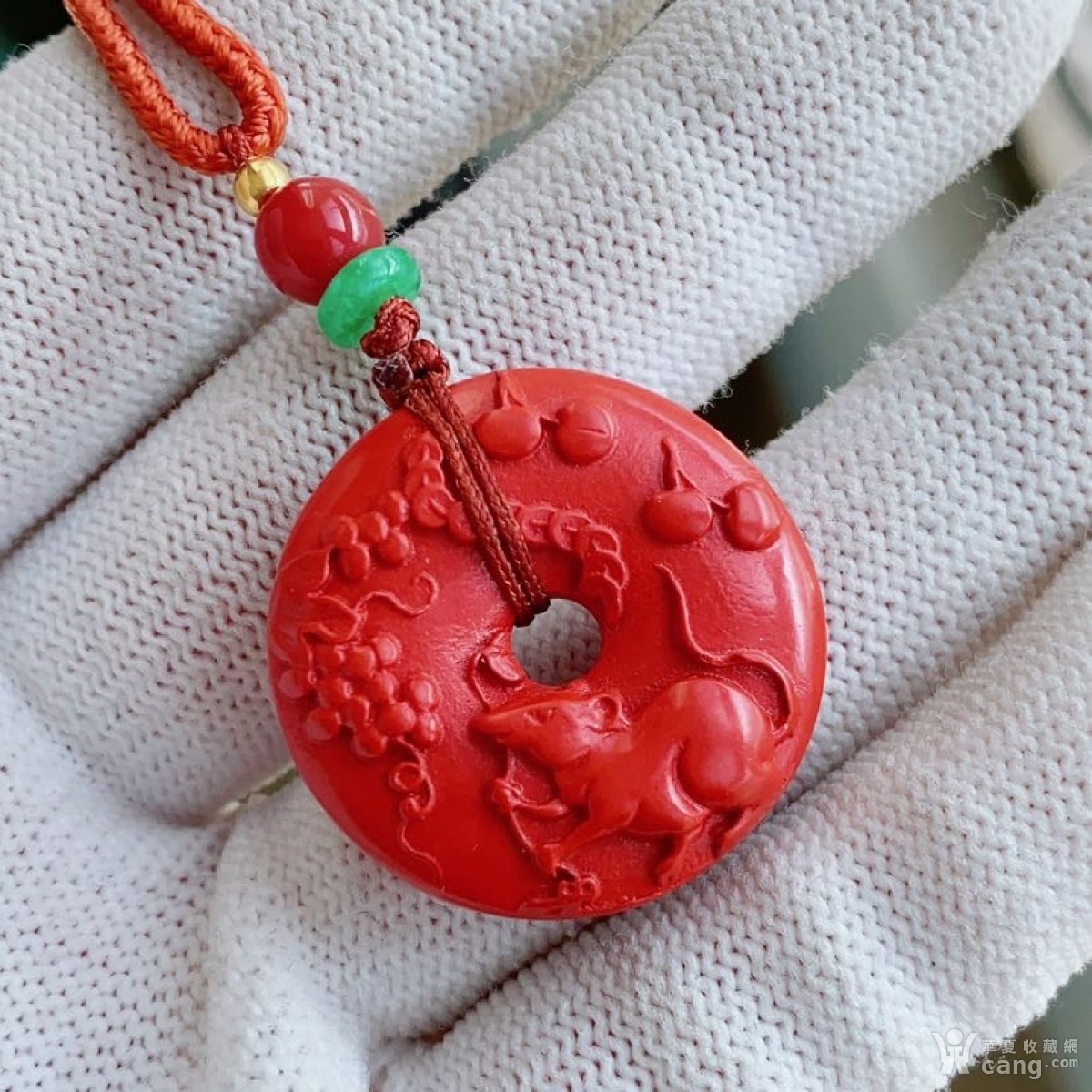 B855精品无裂高含量红朱砂双面招财鼠平安扣吊坠!